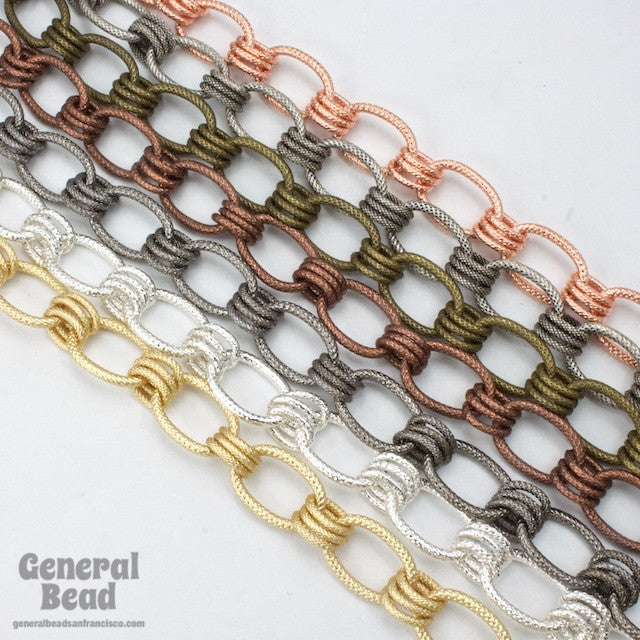 Chain of 19mm x 12mm Textured Oval Links Alternating with Triple 10mm x 8mm Oval Links.