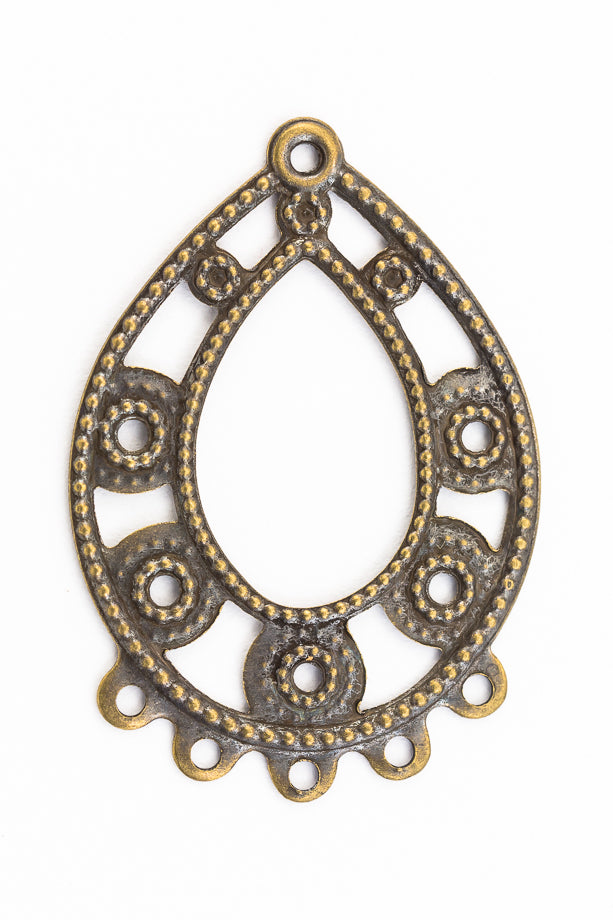 20mm x 19mm teardrop shaped chandelier hoop with 5 loops on bottom edge and 1 at top.