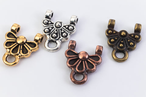 14.3mm x 11.6mm "Oasis" style stitch-in link with 2 perpendicular loops to accommodate beadwork on one side and a simple loop on the other.