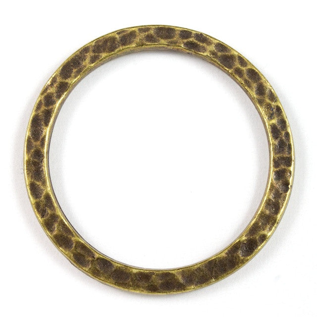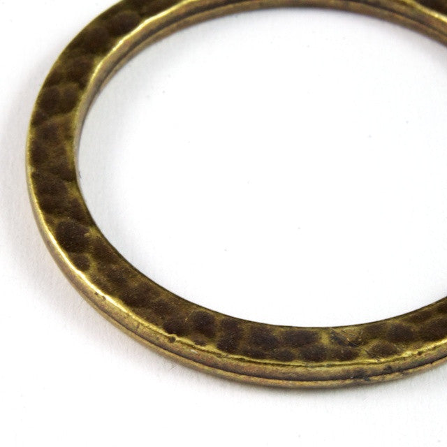 25mm antique brass open ring with hammered texture.