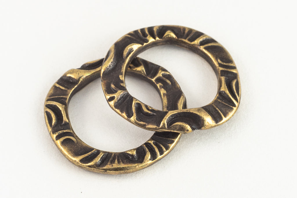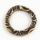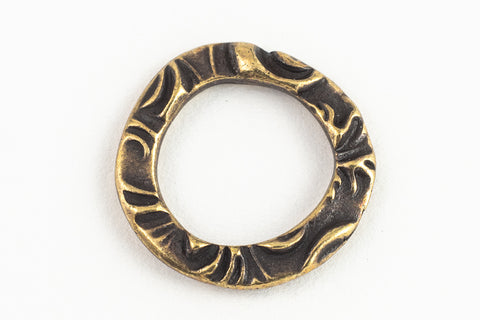 15.8mm x 15.5mm antique brass "Flora" floral embossed irregular ring with 10.8mm x 10.6mm center opening.
