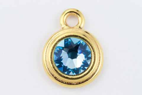 34ss Swarovski Aquamarine/Bright Gold TierraCast Stepped Bezel Charm (10 Pcs) #CK795
