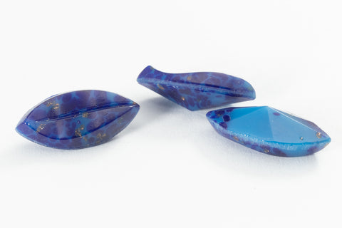 Vintage 7mm x 15mm Mottled Blue Leaf Point Back #XS184-C