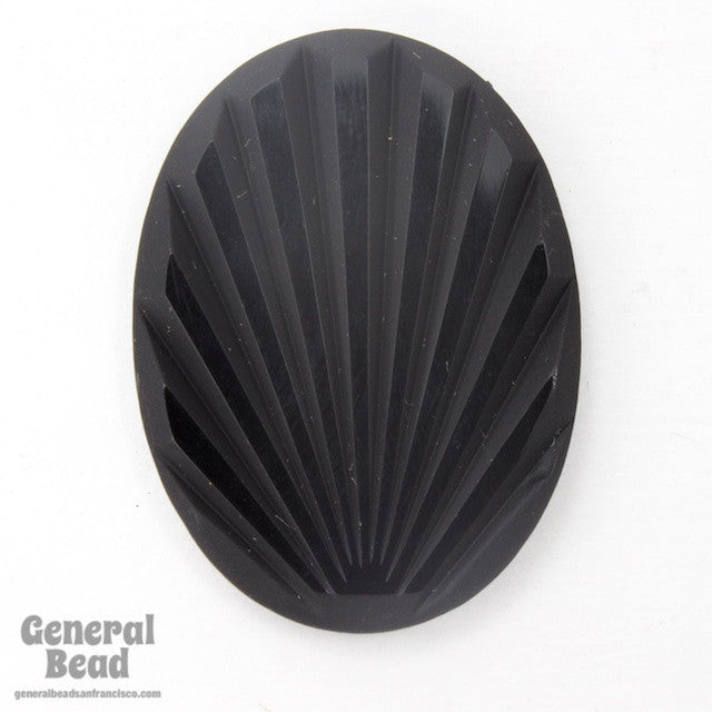Vintage glass cabochon.30mm x 40mm black oval intaglio with Art Deco sunrise design.