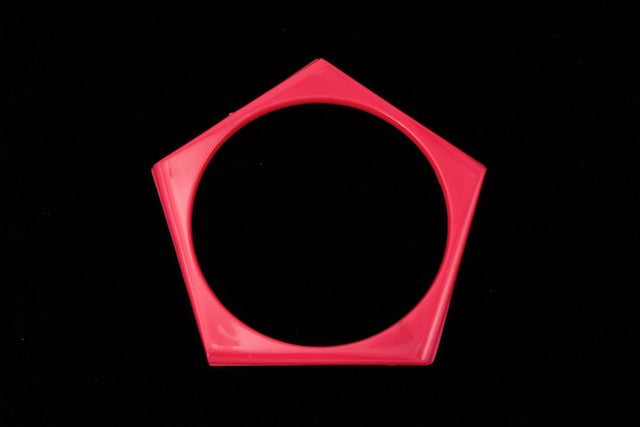 Vintage hot pink Lucite pentagon shaped bangle, made in the USA circa 1980.