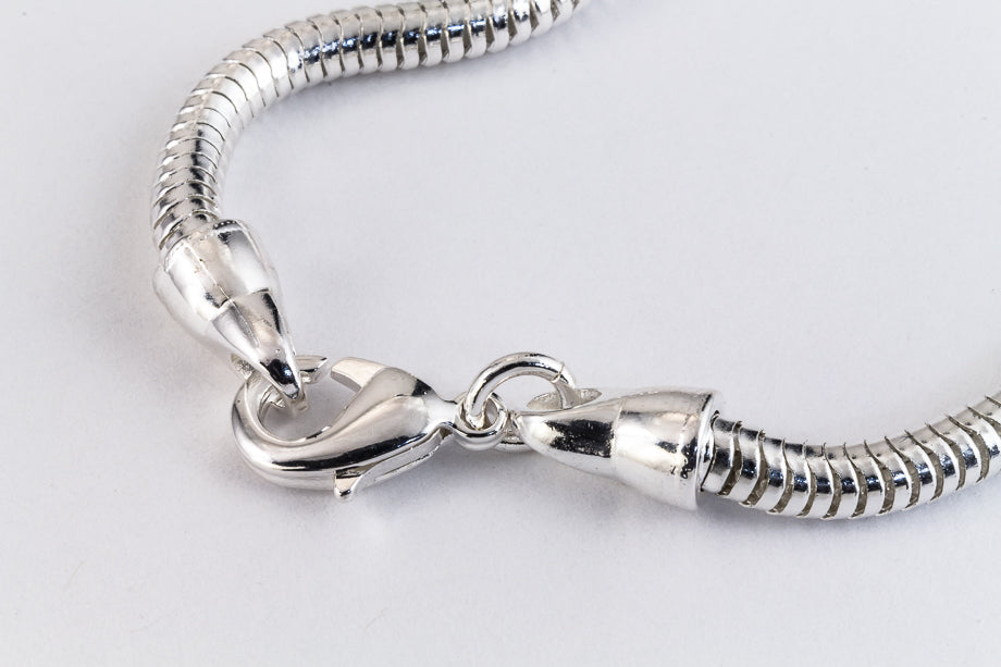 7.5 inch long finished brass bracelet chain with bright silver plating.