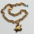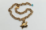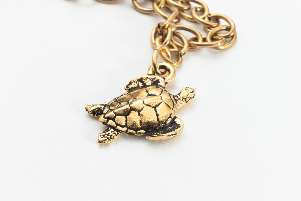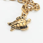 Gold tone oval chain holds a detailed 17mm sea turtle charm.
