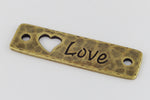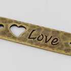 11.5mm x 40.5mm antique brass rectangle link with heart shape opening embossed with the word "Love".