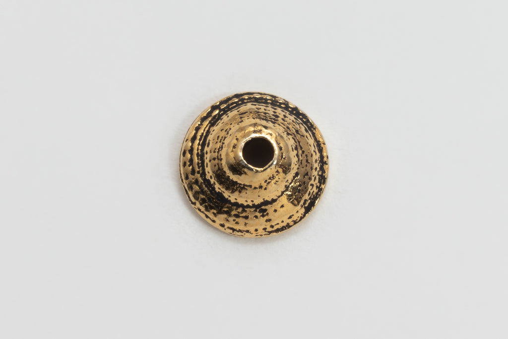7.8mm wide by 3.3mm high bead cap shaped like a spiraling seashell.