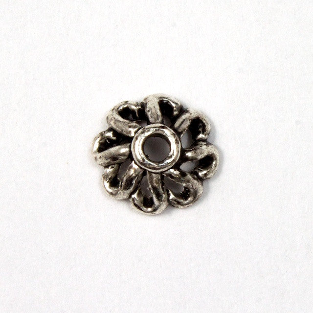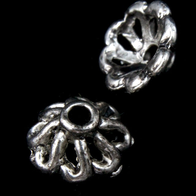 8mm pewter 8 petal bead cap with antique silver plating.