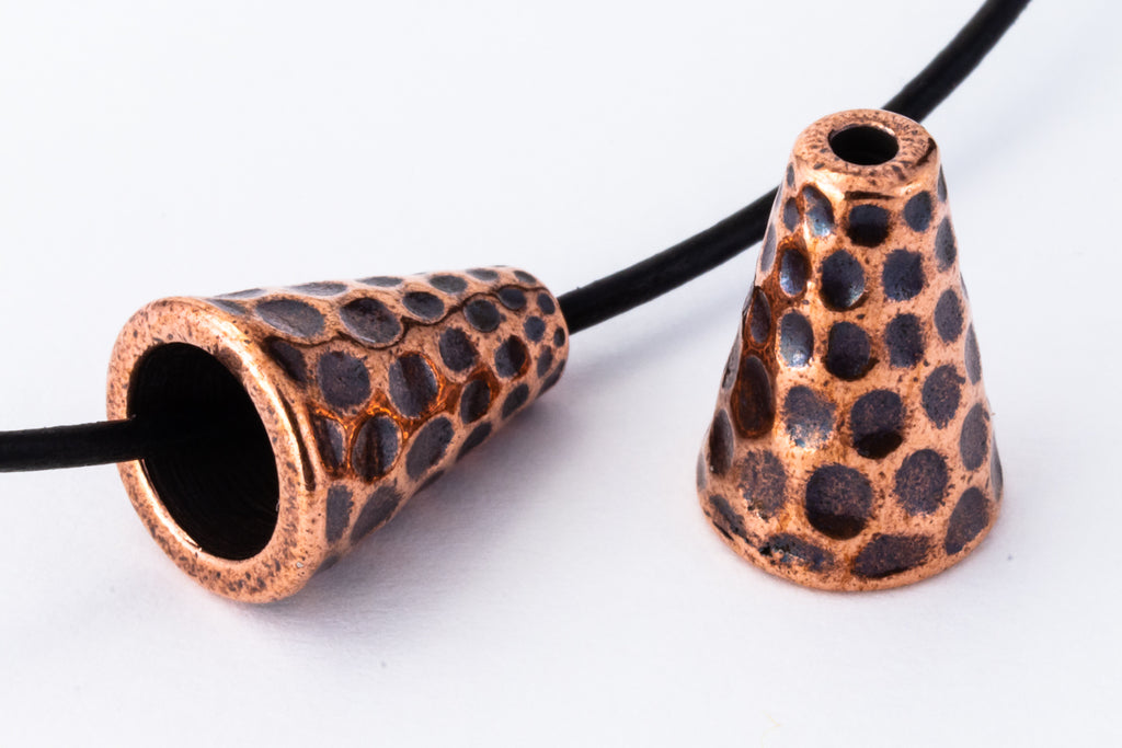 12.5mm x 9.25mm antique copper cone with hammered texture and 1.5mm hole.