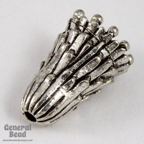 10mm x 17mm cone with antique silver plating and fringe-like texture.