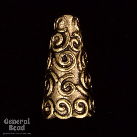 8mm x 18mm granulated cone with antique gold plating and spiral design.