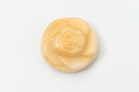 14mm beige glass flat back shaped like an open rose.