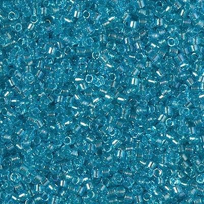 Size 11/0 inside dyed aqua cylinder seed bead.