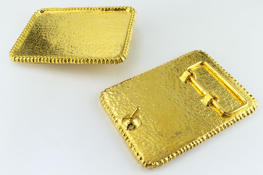 Gold 3.5”x 2” Rope Rectangle Belt Buckle #MFA075