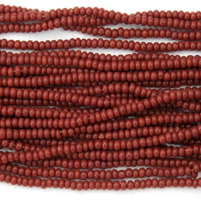 Size 14/0 opaque burnt sienna glass seed beads.