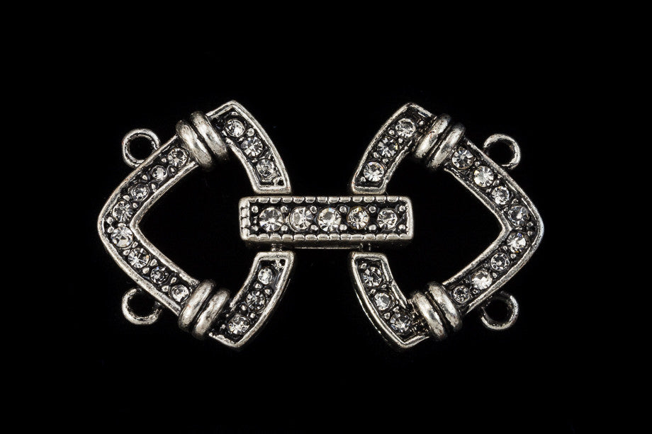 25mm x 14.5mm antique silver crystal buckle clasp with 2 loops on each side.