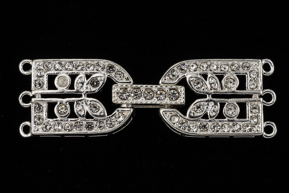 35.5mm x 11mm bright silver crystal buckle clasp with 3 loops on each side.