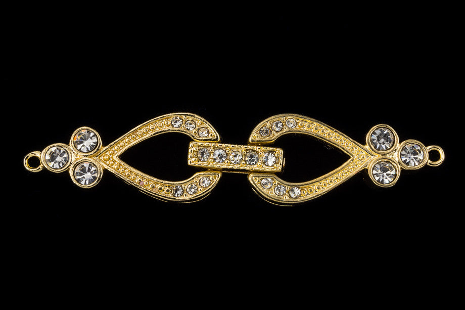 44mm x 10mm bright gold crystal buckle clasp with 1 loop on each side.