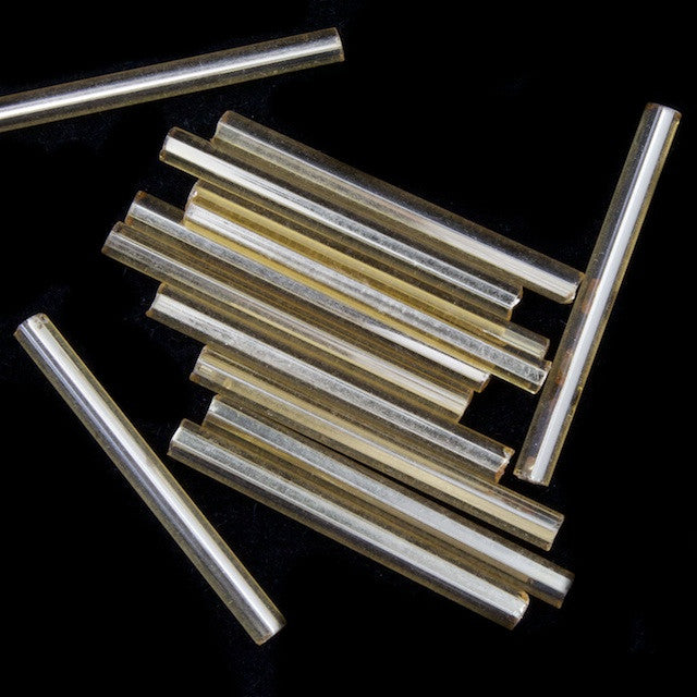 Glass bead- 25mm silver lined light topaz bugle.