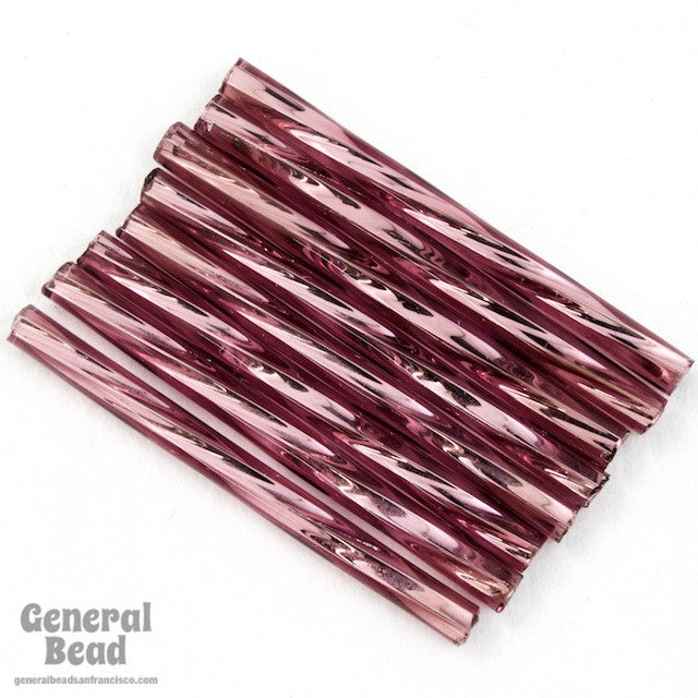Glass bead- 30mm silver lined light amethyst twist bugle.