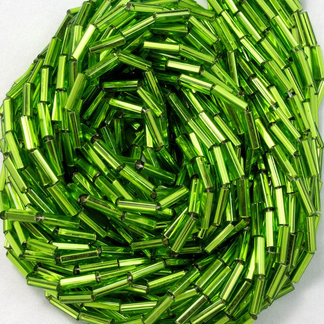 Glass bead- 1/4 inch or 7mm size 3 silver lined lime bugle.