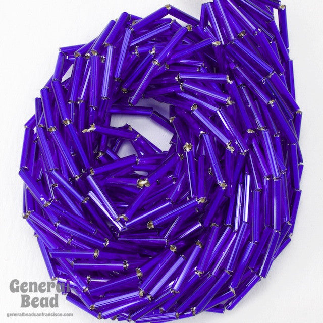 Glass bead- 9mm size 4 silver lined cobalt bugle.