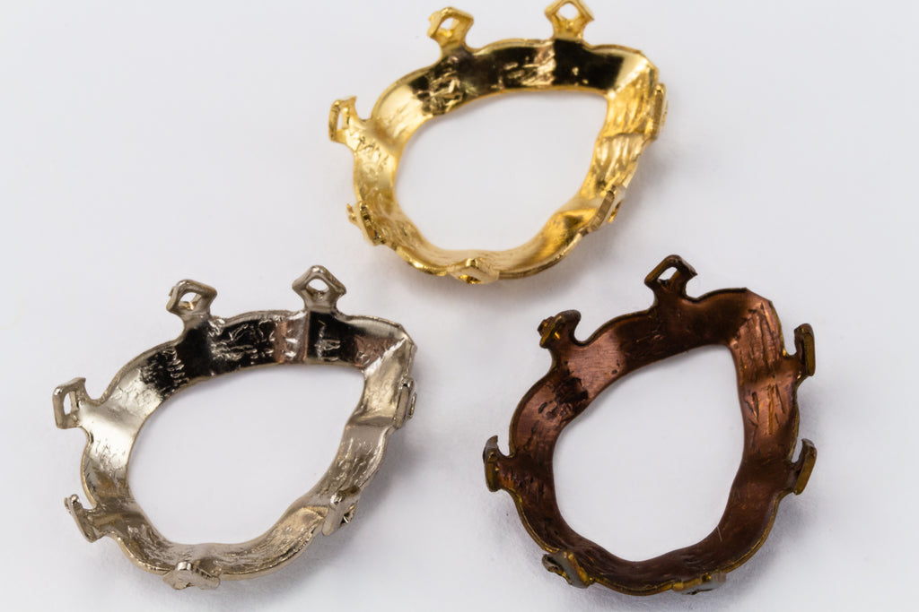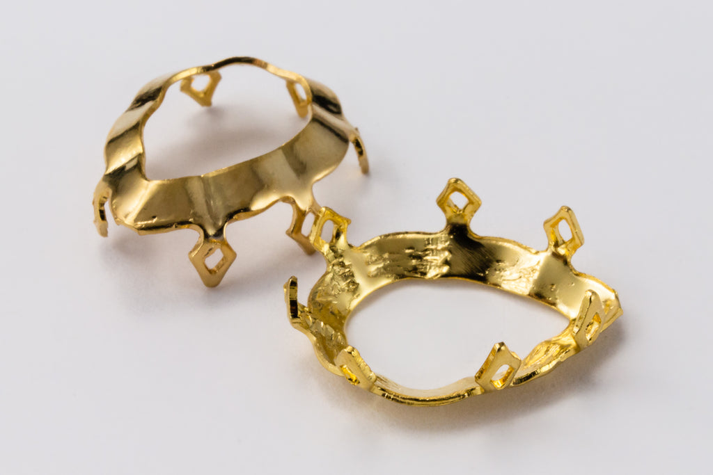 Gold tone brass cabochon setting for point back teardrop or pear.