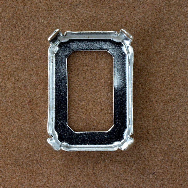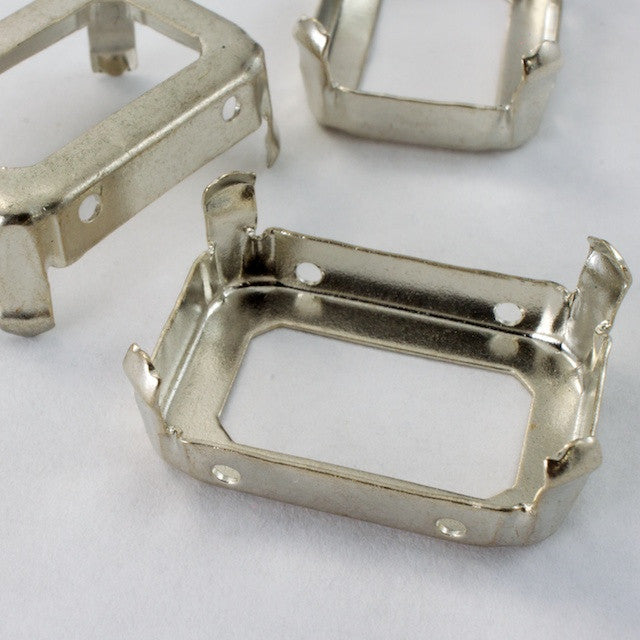 18mm x 25mm silver tone rectangle cab set with 2 holes on each side and open back.