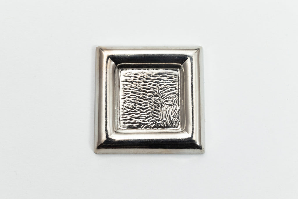 Silver tone brass cabochon setting for square flat back stone.