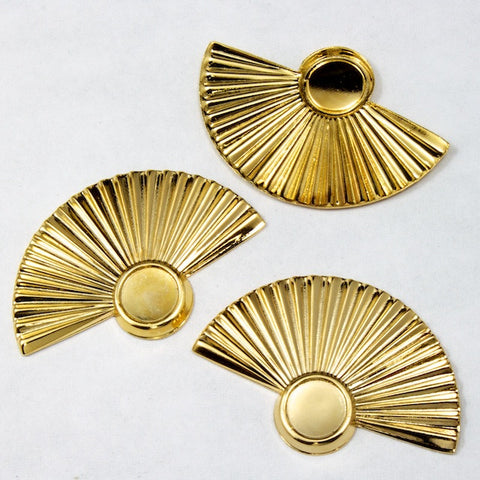 34mm Goldtone Fan with Round Setting (2 Pcs) #2003