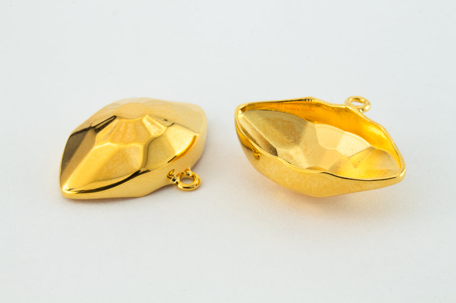 Gold plated finding. Navette shape cab set with loop at long side.