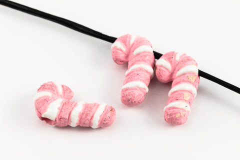 14mm Pink Ceramic Candy Cane Bead #AAU103E
