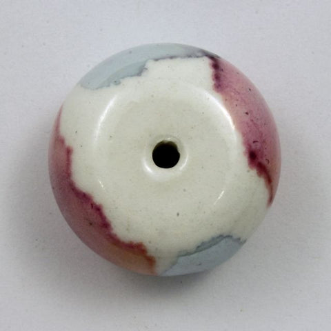 12mm x 22mm pink and blue with white luster ceramic drum bead.