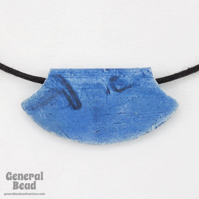 25mm x 50mm mottled cream and blue fan shape bead with lengthwise 2mm hole.