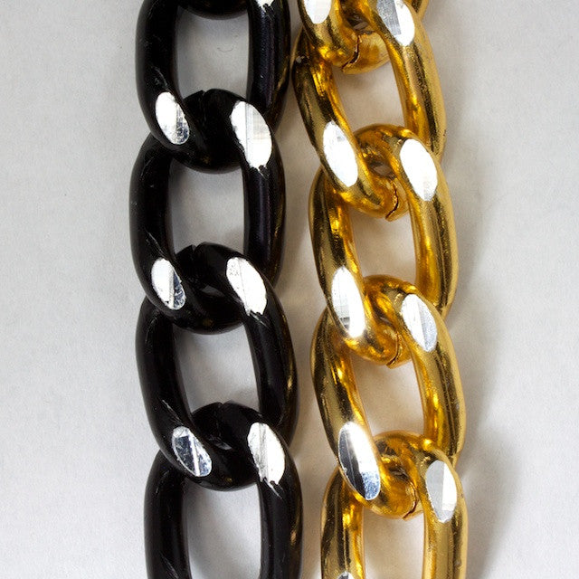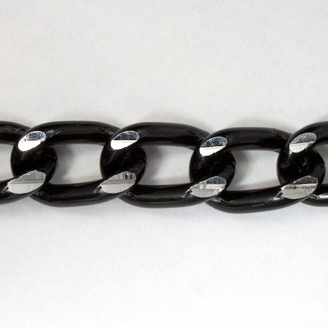 19mm Black/Silver Diamond Cut Aluminum Curb Chain #CC24