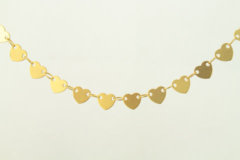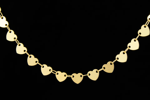 Chain made of 6mm x 5.5mm flat hearts connected by 4mm x 3mm oval jump rings.