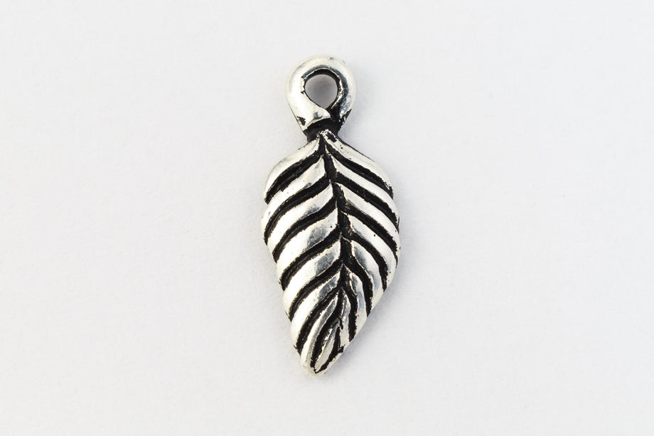 15mm x 6.75mm antique silver birch leaf charm with 1.25mm loop at top.
