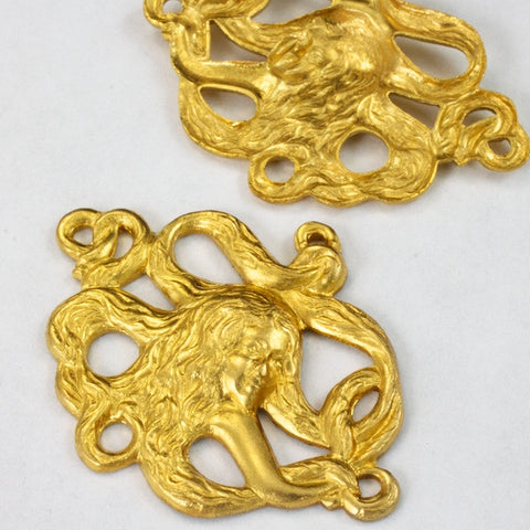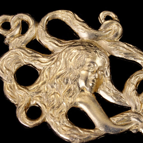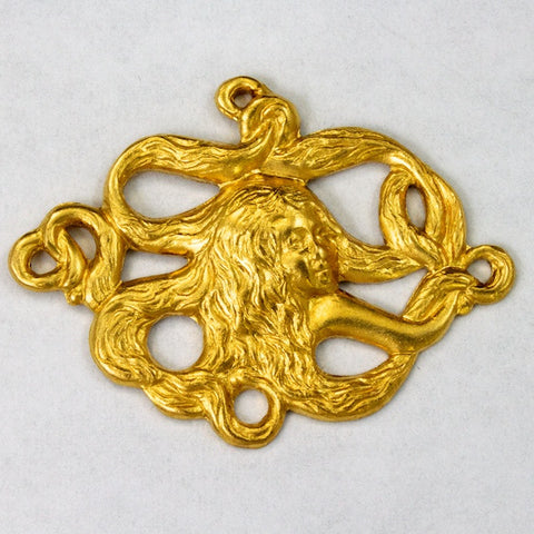 25mm x 30mm raw brass face of a girl with hair flowing out like the tentacles of an octopus.