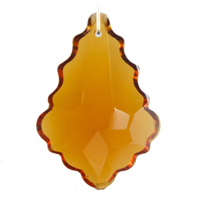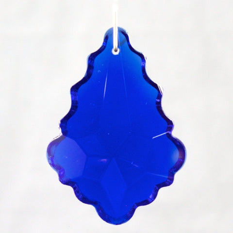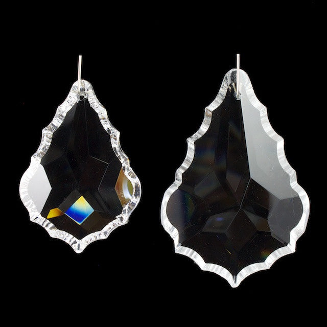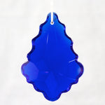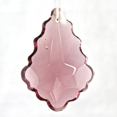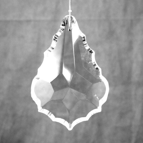 Chinese glass faceted wide bottom teardrop with scalloped edges and hole at top.
