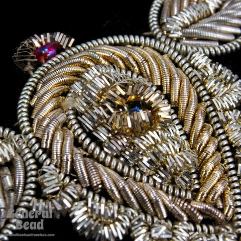 40mm x 120mm shape of outspread wings decorated with metallic silver and gold thread.