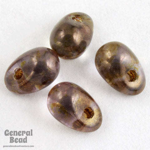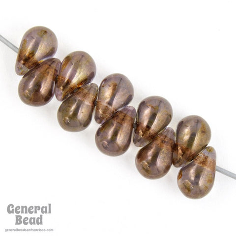 4mm x 6mm transparent luster olive glass teardrop bead with hole through top.