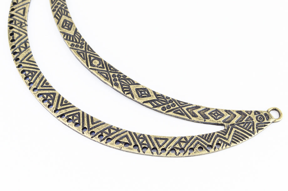 119mm open collar pendant with embossed geometric texture and 43 holes to attach bead work.