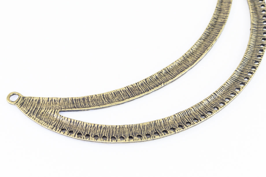 119mm Antique Brass Textured Open Collar Pendant with 43 Holes #MFD165