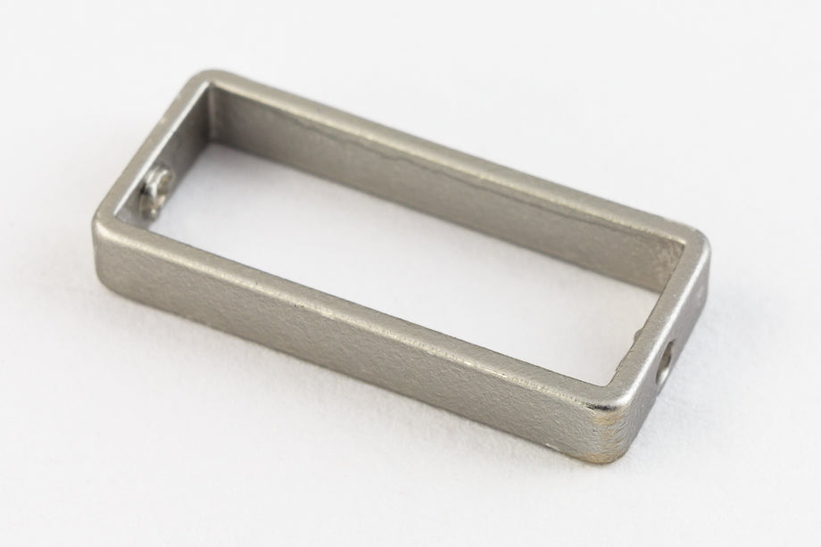 17mm x 8mm rectangle bead frame with 15mm x 6mm opening. 1mm thick, 3mm wide with 1mm holes.
