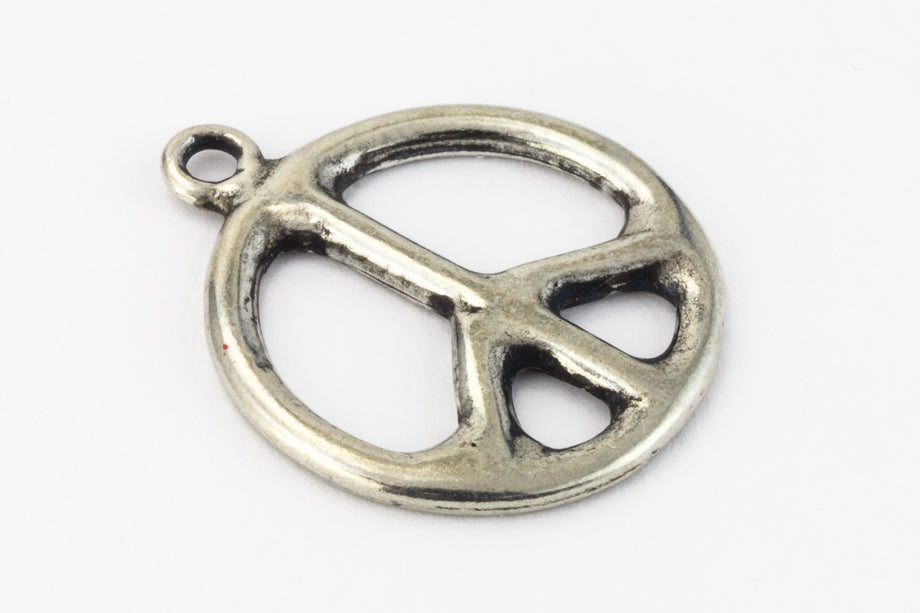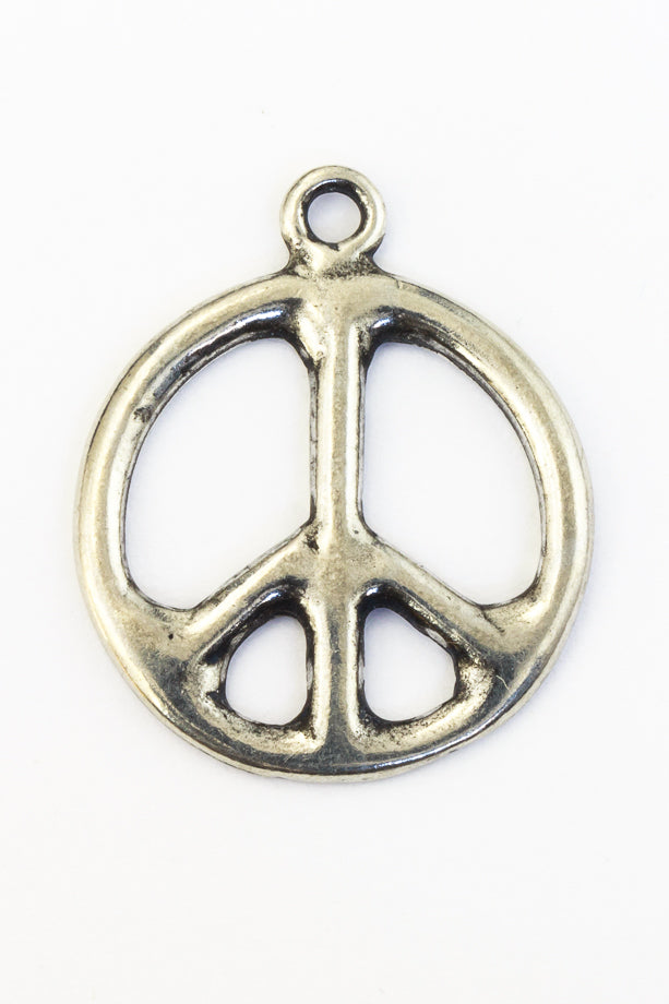 21mm x 26mm pewter Peace Sign charm with 2mm loop at top.