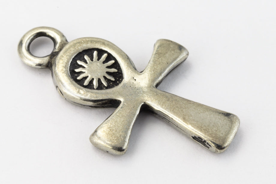 17mm x 30mm pewter Ankh charm with 3mm loop at top.