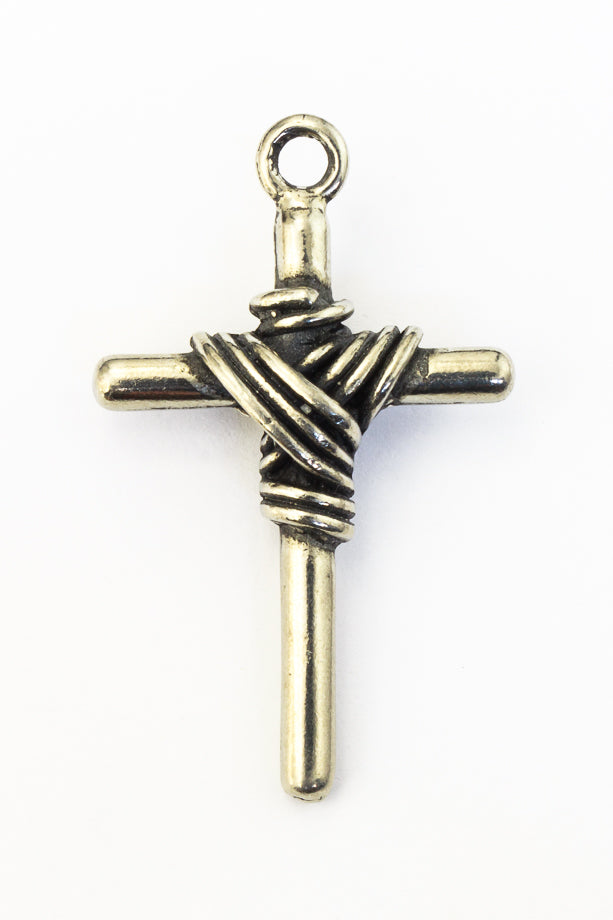 27mm x 43mm pewter wrapped cross with 3mm loop at top.