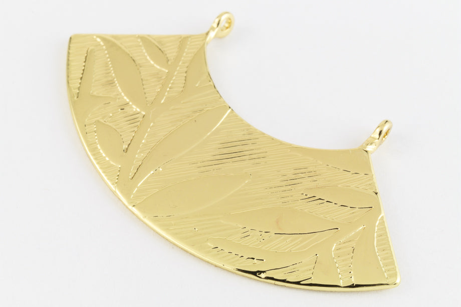 44mm x 22.5mm curved pendant embossed with large pattern of rose blossoms and leaves. 1mm thick with 1.5mm loops.